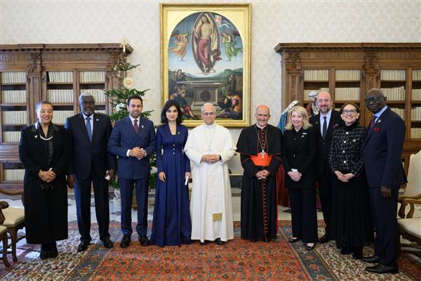 التقى قداسة البابا ليو الرابع عشر، بابا الكنيسة الكاثوليكية، في الفاتيكان، لجنة تحكيم "جائزة زايد للأخوّة الإنسانية 2026"، حيث ناقش مع أعضائها الحاجة الملحّة لاتخاذ خطوات عملية لتعزيز مبادئ الأخوّة الإنسانية، والدور الذي تضطلع به الجائزة في إظهار أن "كل إنسان، وكل دين، مدعوٌّ إلى دعم الأخوّة الإنسانية وترسيخها".