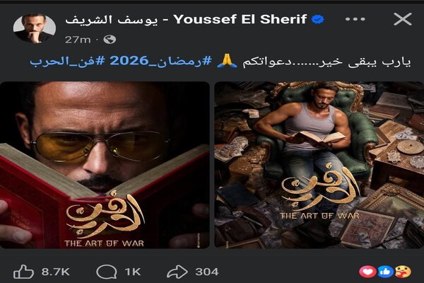 طرح الفنان يوسف الشريف عن البوسترات لمسلسله الجديد "فن الحرب"، المقرر عرضه في رمضان 2026، وذلك عبر حسابه الرسمي على موقع التواصل الاجتماعي الفيسبوك.