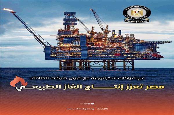 أكد المركز الإعلامي لمجلس الوزراء على جهود الدولة لزيادة الإنتاج والتصدير، وتطوير البنية التحتية، وترسيخ مكانة مصر كمركز إقليمي لتجارة وتداول الغاز، لاسيما في ظل الاضطرابات والمتغيرات الدولية الراهنة، وما يصاحبها من سعي العديد من الدول إلى تأمين احتياجاتها من إمدادات الطاقة .