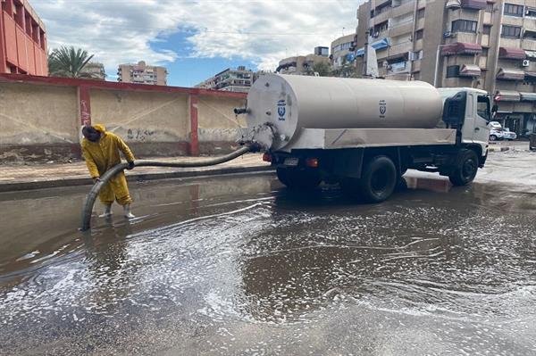 تنفيذًا لتوجيهات اللواء أح / محب حبشي، محافظ بورسعيد، بسرعة التعامل مع آثار حالة الطقس غير المستقرة انتشرت فور تساقط الأمطار سيارات ومعدات شفط وسحب مياه الأمطار والأطقم الفنية العاملة عليها، بكافة أحياء المحافظة ومدينة بورفؤاد، للتعامل السريع مع تجمعات المياه بالشوارع.