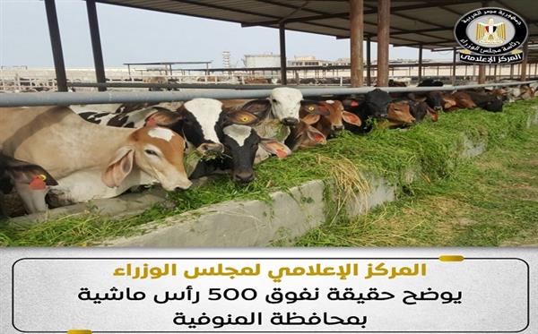 نشر المركز الإعلامي لمجلس الوزراء بيانًا عبر منصاته على مواقع التواصل الاجتماعي، أوضح من خلاله حقيقة ما تردد بشأن نفوق 500 رأس ماشية بمحافظة المنوفية.