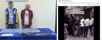 وبالفحص، أمكن تحديد وضبط الشخصين الظاهرين بمقطع الفيديو، وتبين أن أحدهما له معلومات جنائية، ويقيمان بدائرة قسم شرطة بولاق الدكرور. وعُثر بحوزتهما على كمية من مخدر الآيس، وفرد محلي، وسلاح أبيض، ومبلغ مالي.