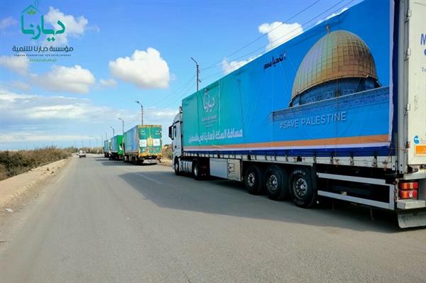 أطلقت مؤسسة ديارنا للتنمية، القافلة السادسة من المساعدات الإنسانية العاجلة التي تنفذها المؤسسة دعمًا لقطاع غزة، وذلك بالتعاون والتنسيق الكامل مع الهلال الأحمر المصري وتضم القافلة 4 شاحنات محمّلة بنحو 77 طنًا من المساعدات المتنوعة وتحركت الشاحنات الى معبر رفح اليوم استعداد للدخول للقطاع.