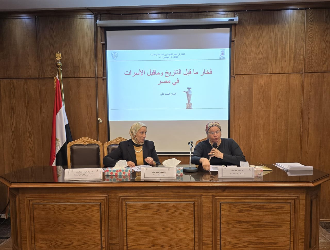 افتتحت فعاليات الندوة بكلمات ترحيبية ألقاها كل من عميد الكلية ورئيس قسم الآثار المصرية القديمة ورئيس قسم ترميم الآثار غير العضوية، أكدوا خلالها أهمية التكامل بين الدراسات الأثرية وعلوم الترميم والصيانة، ودور البحث العلمي المتخصص في إعادة قراءة الفخار المصري القديم بوصفه مصدرا معرفيا يعكس الجوانب الاقتصادية والحضارية والتقنية للمجتمع المصري عبر العصور، إلى جانب إبراز أحدث المناهج العلمية والتقنيات الحديثة في دراسة وصيانة الآثار الفخارية، بما يسهم في إعداد كوادر بحثية قادرة على الربط بين الجانب النظري والتطبيقي، ومواكبة التطورات العلمية في مجالي الآثار والترميم.