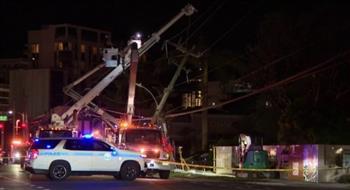 واصطدمت السيارة بعمود كهرباء بقوة هائلة تسببت في انقطاع التيار عن عدد من المباني المجاورة في حي بريكيل.