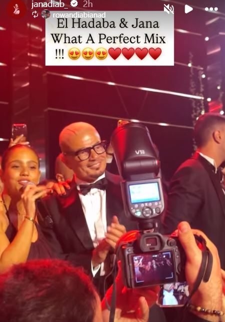 وفي سياق أخر، خطفت جانا، ابنة الهضبة عمرو دياب، أنظار الجمهور في أول حفل لها بمفردها، حيث قدمت أغنيتها الجديدة باللغة الإنجليزية بعد النجاح اللافت لأغنية "خطفوني".