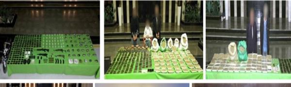 وضُبط بحوزة المتهمين قرابة 767 كيلوجرامًا من المواد المخدرة المتنوعة شملت «حشيش، هيدرو، شابو، هيروين، أفيون، بانجو، كوكايين»، بالإضافة إلى 4000 قرص مخدر ومؤثر، و72 قطعة سلاح ناري تنوعت ما بين «18 بندقية آلية، 10 بنادق خرطوش، 43 فرد خرطوش، وطبنجة».