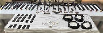 وفي مجال ضبط الأسلحة النارية والبيضاء، تمكنت الأجهزة الأمنية من ضبط 167 قطعة سلاح ناري بحوزة 151 متهمًا، شملت 9 بنادق آلية، و28 بندقية خرطوش، و4 طبنجات، و126 فرد خرطوش، و255 طلقة نارية مختلفة الأعيرة، و10 خزائن ذخيرة، فضلًا عن ضبط 286 قطعة سلاح أبيض.