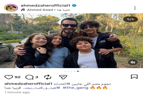 وكتب عبر حسابه على موقع التواصل الاجتماعي لتبادل الصور والفيديوهات انستجرام: «نجوم مصر اللي جايين.. العصابة، قريبًا جدًا.. لعبة وقلبت بجد».