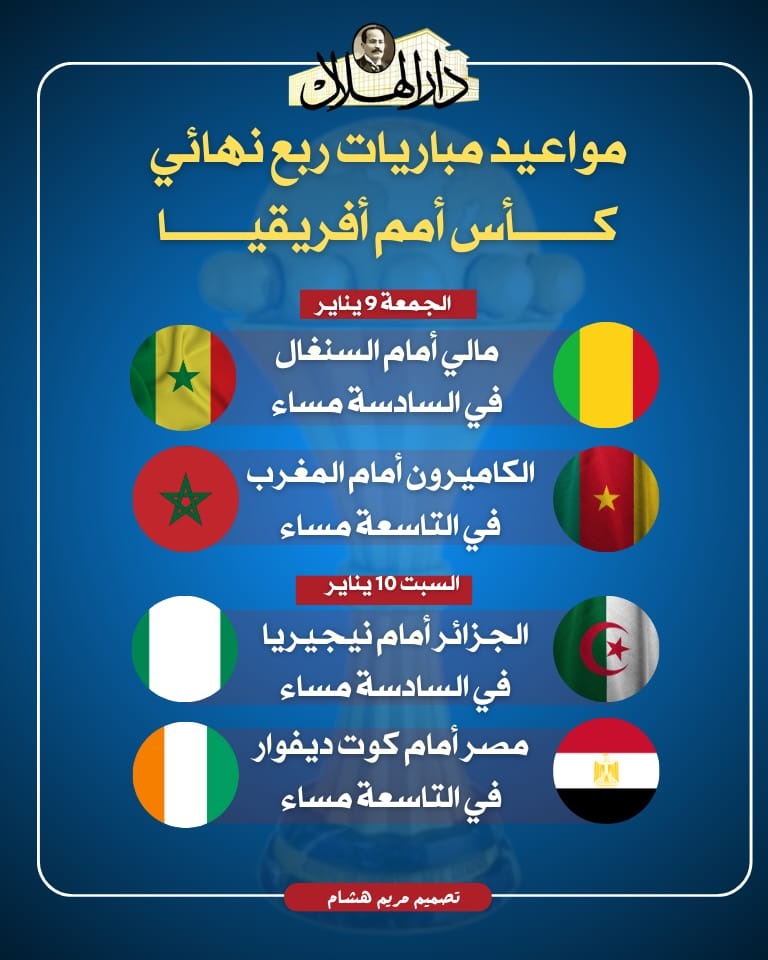 كأس أمم أفريقيا..مواعيد مباريات دور ربع النهائي| إنفو جراف