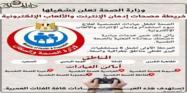 أعلنت وزارة الصحة والسكان، بدء تشغيل عيادات تخصصية لعلاج سوء استخدام وإدمان الإنترنت والألعاب الإلكترونية، ضمن خدمات مبادرة «صحتك سعادة» المعنية بالصحة النفسية، وذلك في إطار توجه الدولة نحو تعزيز الصحة النفسية وبناء الإنسان المصري، وتنفيذًا لتوجيهات الدكتور خالد عبدالغفار نائب رئيس مجلس الوزراء للتنمية البشرية وزير الصحة والسكان.