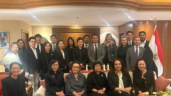 استضافت السفيرة "هالة يوسف" سفيرة جمهورية مصر العربية لدى مملكة تايلاند عدد من كبار مسئولي وزارة الخارجية وممثلي مجتمع الأعمال والمؤسسات الاقتصادية التايلاندية، وذلك بمناسبة الزيارة المرتقبة للوفد التجاري التايلاندي إلى القاهرة خلال الفترة من ١٠ إلى ١٤ فبراير، برئاسة المدير العام لقطاع جنوب آسيا والشرق الأوسط وأفريقيا بوزارة الخارجية التايلاندية.