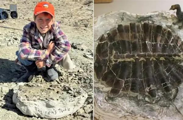 وعثر الطفل تورين بوب، على صدفة سلحفاة ناعمة محفوظة بشكل استثنائي تعود إلى ما يقرب من 50 مليون سنة.