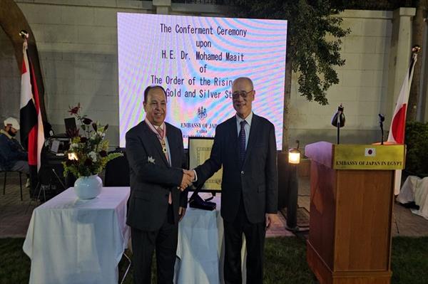 وجرى التكريم خلال حفل خاص أقيم بمقر السفارة اليابانية بالقاهرة، حيث قام السفير الياباني فوميو إيواي، بتقليد الدكتور معيط الوسام وتسليمه الشهادة الرسمية، مشيداً بدوره الفعال في دفع عجلة التعاون السياسي والاقتصادي والثقافي، ومثمناً الإسهامات الملموسة التي قدمها لتنمية الروابط الثنائية.