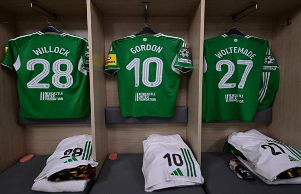 زينت قمصان فريق نيوكاسل يونايتد، ملعب توفيق إبراهيموڤ الجمهوري، قبل انطلاق مباراته أمام كاراباخ اغدام الأذربيجاني، مساء اليوم الأربعاء، في ذهاب ملحق بطولة دوري أبطال أوروبا.