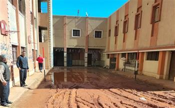 للمرة الثانية.. غرق فناء مدرسة في سوهاج بسبب كسر مفاجئ لماسورة مياه