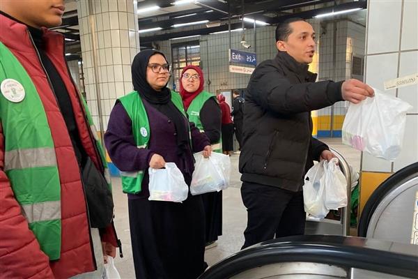 حيث تقوم الحملة بتوزيع الوجبات الخفيفة يوميآ بإشراف العميد حسام السيسى رئيس الإدارة المركزية للشئون المالية والإدارية بوزارة النقل وبالتنسيق مع المهندس على الفضالي العضو المنتدب التنفيذي للشركة المصرية لإدارة وتشغيل المترو.