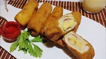 -يخلط البقسماط مع النشا والدقيق والتوابل، ثم تغلف قطع الكوردون بلو بالخليط الخارجي جيدا.