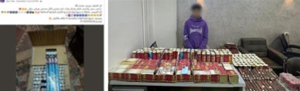 وعقب تقنين الإجراءات، أمكن ضبط المتهم، وبحوزته كمية من الألعاب النارية مختلفة الأحجام والأشكال، إلى جانب هاتف محمول. وبفحص الهاتف تبين احتواؤه على آثار وأدلة تؤكد نشاطه الإجرامي في الترويج لتلك المواد.