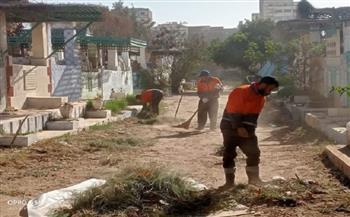 كما واصلت المهندسة شيماء جودة رئيس حي غرب متابعة أعمال شركة نهضة مصر لرفع كفاءة النظافة بمقابر بورسعيد القديمة حيث تم رفع كميات كبيرة من القمامة والرتش والحشائش من الشوارع الرئيسية والجانبية بالمقابر .