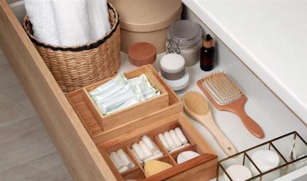 حددي موقع لكل نوع من المنتجات داخل الخزانة حسب استخدامه ، لذا ضعي المنتجات المستخدمة يوميًا في متناول اليد، بينما يمكن وضع المنتجات الأقل استخدام في الرفوف العليا أو الأسفل ، استخدمي صناديق أو فواصل لتنظيم الأقسام داخل الخزانة.