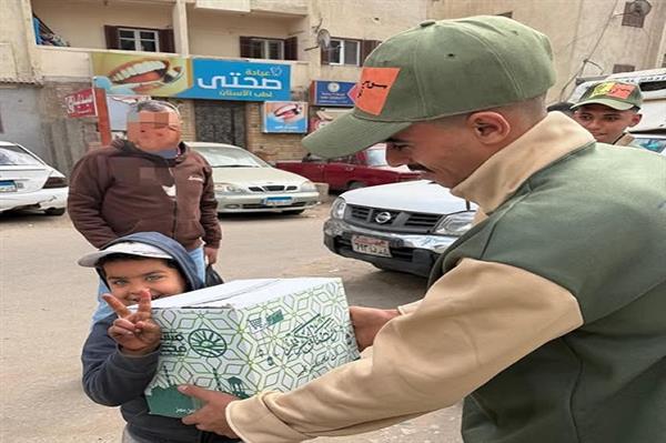 جانب من توزيع الكراتين