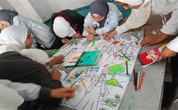 كما نفذت ندا أحمد ورشة فنون تشكيلية لتلوين جدارية بألوان الشمع مستوحاة من التراث الثقافي لمحافظة الفيوم، ما أتاح للطلاب التعبير عن جانب من الهوية المحلية بطريقة مبتكرة وممتعة.