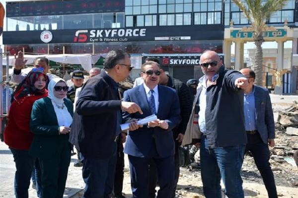 محافظ بورسعيد يتفقد سير العمل في تطوير ورفع كفاءة ميدان مجمع المطاعم بحي المناخ والمنطقة المحيطة بالكورنيش