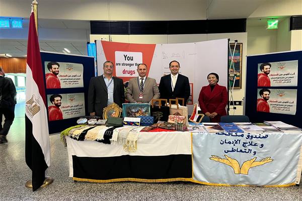وكان  الدكتور عمرو عثمان مدير صندوق مكافحة وعلاج الإدمان والتعاطي والسفير محمد نصر سفير مصر لدى النمسا والمندوب الدائم لدى الأمم المتحدة والمنظمات الدولية في فيينا  قد افتتحا معرض الصندوق بمقر منظمة  الأمم المتحدة بفيينا، بحضور  اللواء مفيد فوزى مدير الإدارة العامة لمكافحة المخدرات .