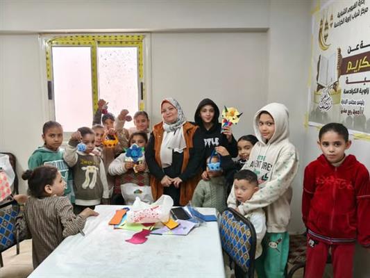 كما تضمنت الأنشطة ورشة أشغال يدوية باستخدام الورق الملون، تم خلالها تدريب الأطفال على تصميم كروت تهنئة بأفكار مبتكرة، تحت إشراف المدربة فاطمة محمد ربيع، التي حرصت على تشجيع المشاركين على التعبير عن مشاعرهم من خلال أعمال فنية بسيطة ومبهجة.