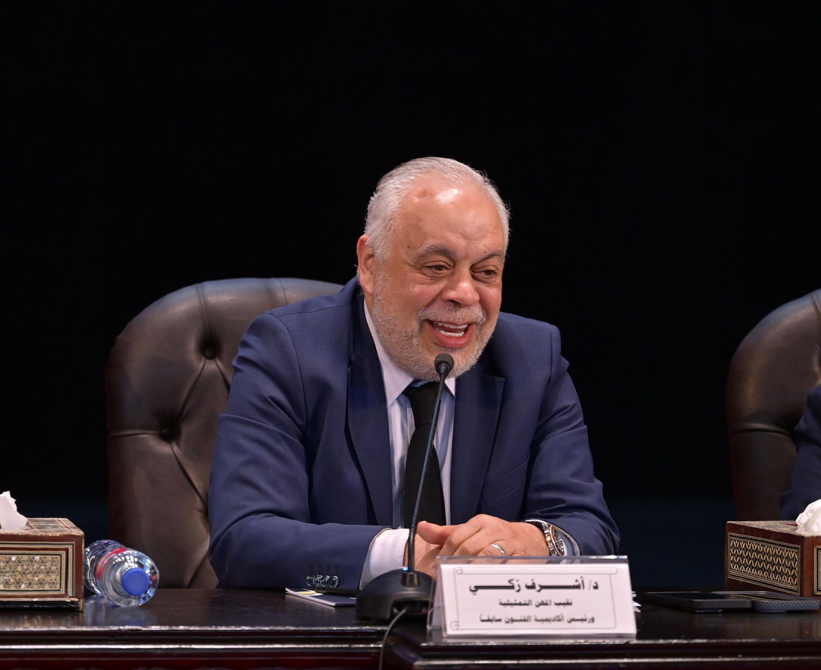 وأشار الدكتور أشرف زكي، إلى دور الدراما في التأثير علي مجريات الرأي العام، وأنه يمتلك القدرة علي تغيير أوضاع قائمة، مؤكدًا أن الفن والدراما يمثلان قوة ناعمة مؤثرة في تشكيل وعي المجتمع، لما لهما من قدرة على الوصول إلى مختلف الفئات والتأثير في وجدانهم وسلوكهم، مشيرًا إلى أن الأعمال الدرامية الجادة تسهم في طرح القضايا المجتمعية ومناقشتها بعمق، بما يعزز من قيم الانتماء والمسؤولية، لافتًا إلى أن الدراما الواعية قادرة على تصحيح المفاهيم المغلوطة، وترسيخ السلوكيات الإيجابية، ودعم جهود الدولة في بناء الإنسان، ومنوها إلى عدد من الأعمال الفنية التى ساهمت بشكل كبير فى تغيير قوانين داخل مصر، مع تأكيده على ضرورة عودة الاهتمام بالنشاط المسرحي والفني والثقافي داخل المدرسة كونه يمثل الغذاء للتلاميذ وتعمق لديهم حب اللغة وتعليم الفنون.
