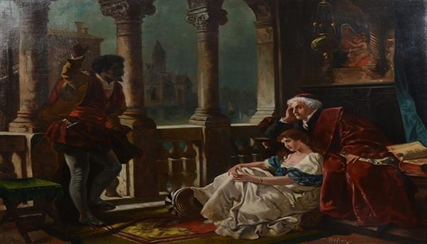 والكادر في التقرير  من لوحة: Othello Relating His Adventures to Desdemona للفنان الألماني: Carl Ludwig Friedrich Becker ( 1820م - 1900م)