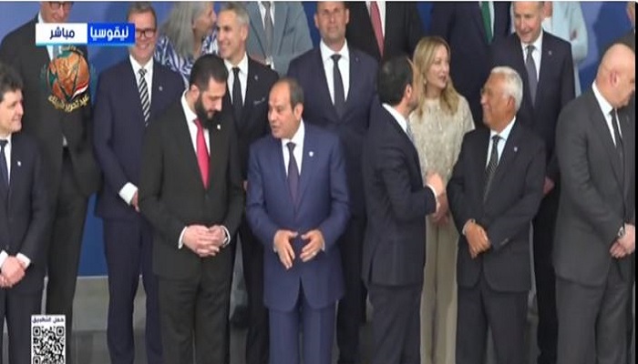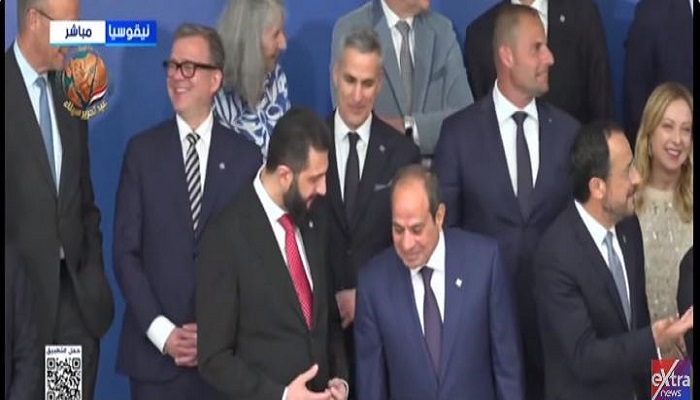 رصدت عدسة قناة أكسترا نيوز، حوار جانبي بين الرئيس عبد الفتاح السيسي، ونظيره السوري أحمد الشرع وذلك خلال التقاط الصورة الجماعية للمشاركين في الاجتماع العربي الأوروبي بقبرص.