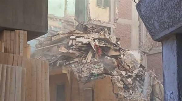 وتابع حي وسط ، أعمال إزالة الأجزاء المعلقة بعقار كائن بشارع سيدى الصورى بالعطارين ، بمعرفة مقاول الإزالة التابع للحي لخطورته على السلامة العامة.