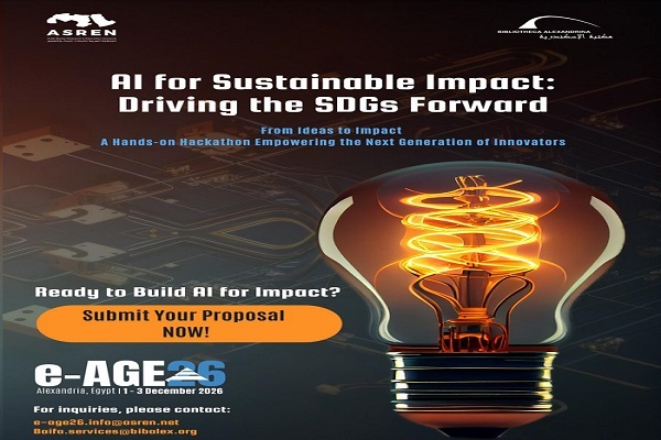 تعلن مكتبة الإسكندرية والمنظمة العربية لشبكات البحث والتعليم (ASREN) عن إطلاق هاكاثون «الجيل القادم من المبتكرين الشباب»، بدعم من أكاديمية الشباب العالمية (Global Young Academy)، وذلك ضمن فعاليات مؤتمر «e-AGE26» الذي تستضيفه مكتبة الإسكندرية في الفترة من 1 إلى 3 ديسمبر  المقبل 2026.