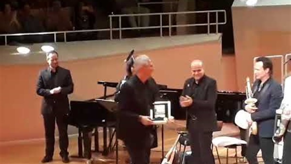 لحظة تسلم وزيرة الثقافة جائزة «ميوزك أورد» الألمانية