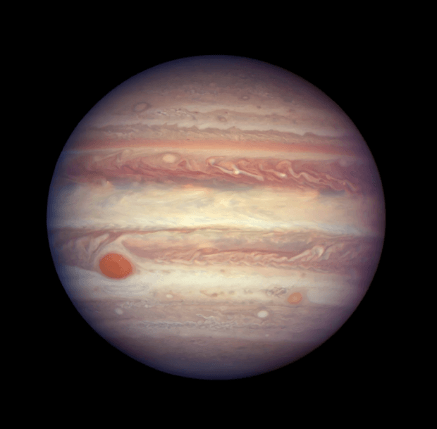 التقط مرصد هابل الفضائي هذه الصورة يوم 3 أبريل قبل أيام من تقابله مع الأرض والشمس على نفس الخط حيث كوكب الأرض في المنتصف.